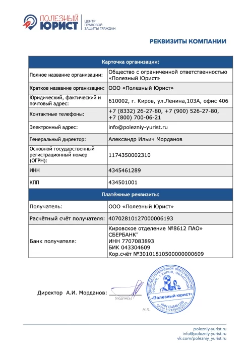 Получатель: ООО «Полезный Юрист»